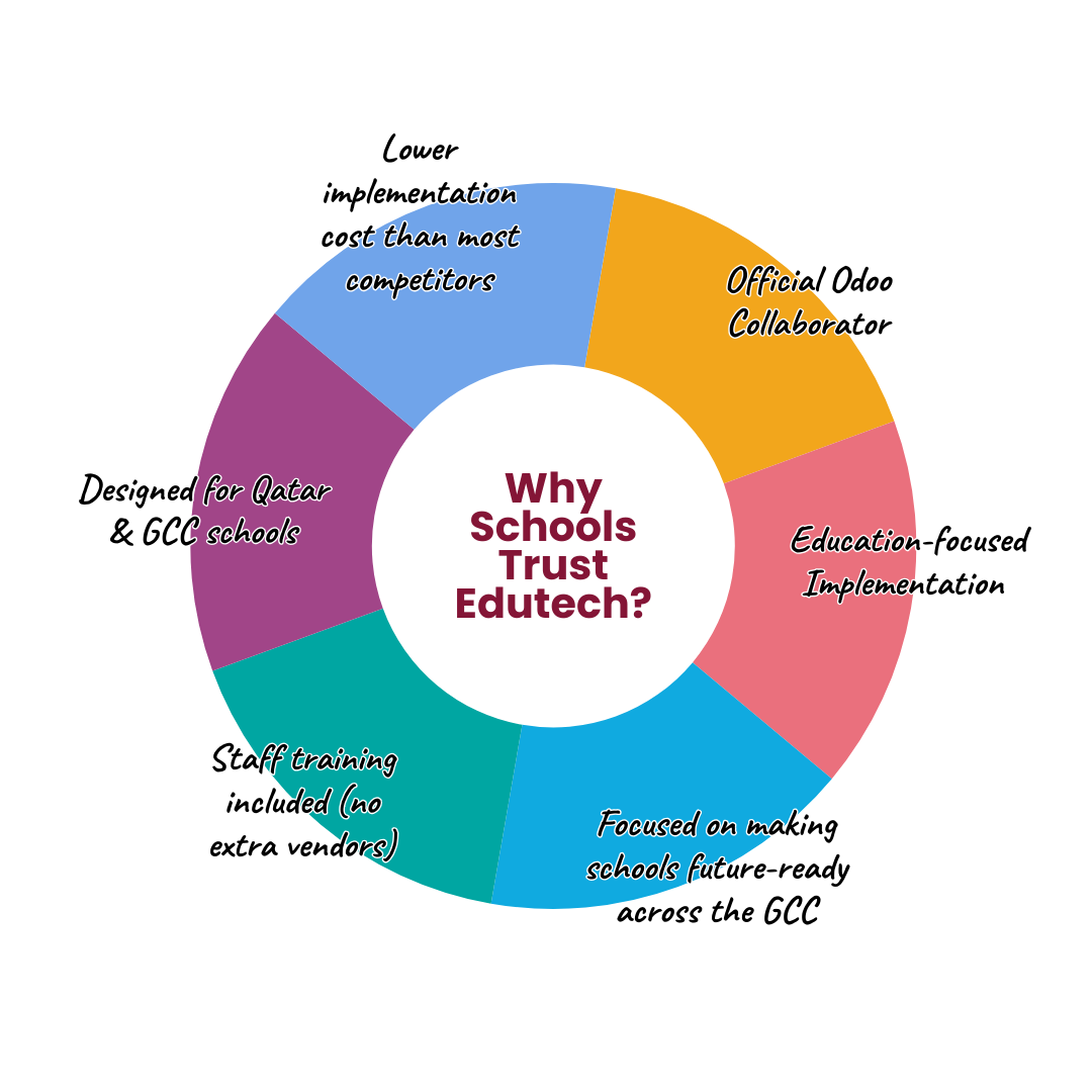 Schools usually spend a much higher monthly budget managing fees, payroll, exams, LMS, and parent communication across different systems. Odoo replaces all of these with one integrated platform, significantly reducing overall software costs.