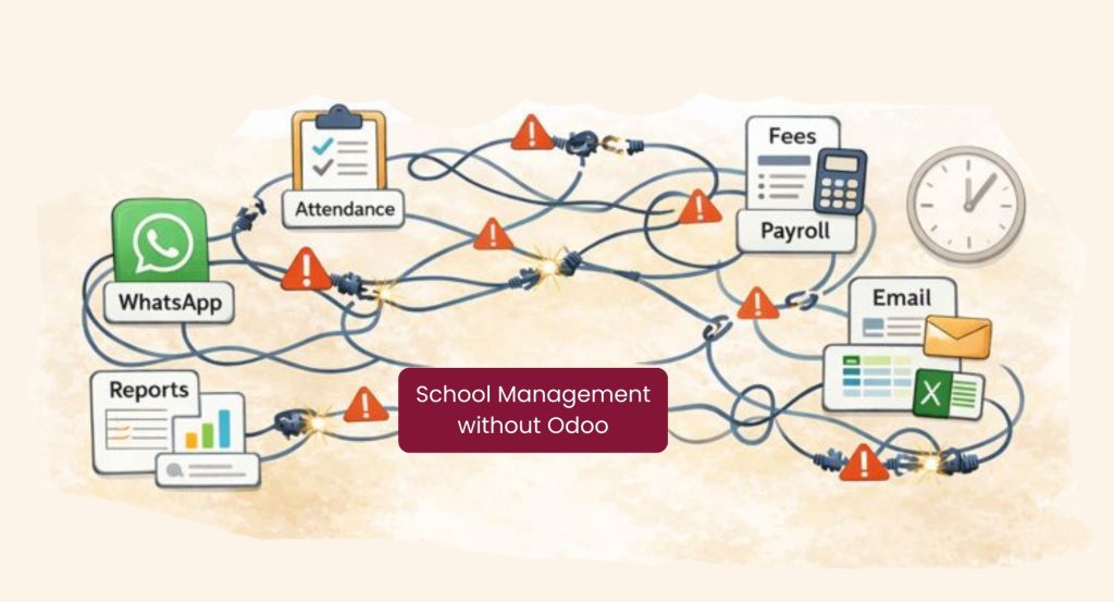 Odoo is an all-in-one school management platform that integrates student admissions, attendance, fees, payroll, exams, eLearning, library, HR, and parent communication in a single system. Instead of managing multiple disconnected tools, everything is centralized, reducing errors and saving time.